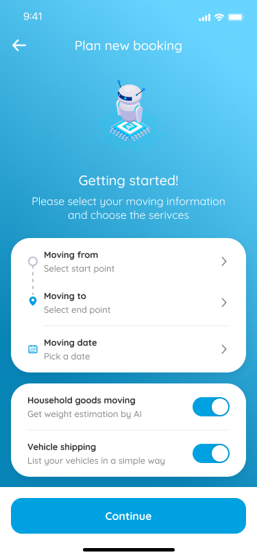 Relo Moving is served worldwide, so we have to let the user know what type of transportation they can go with it.