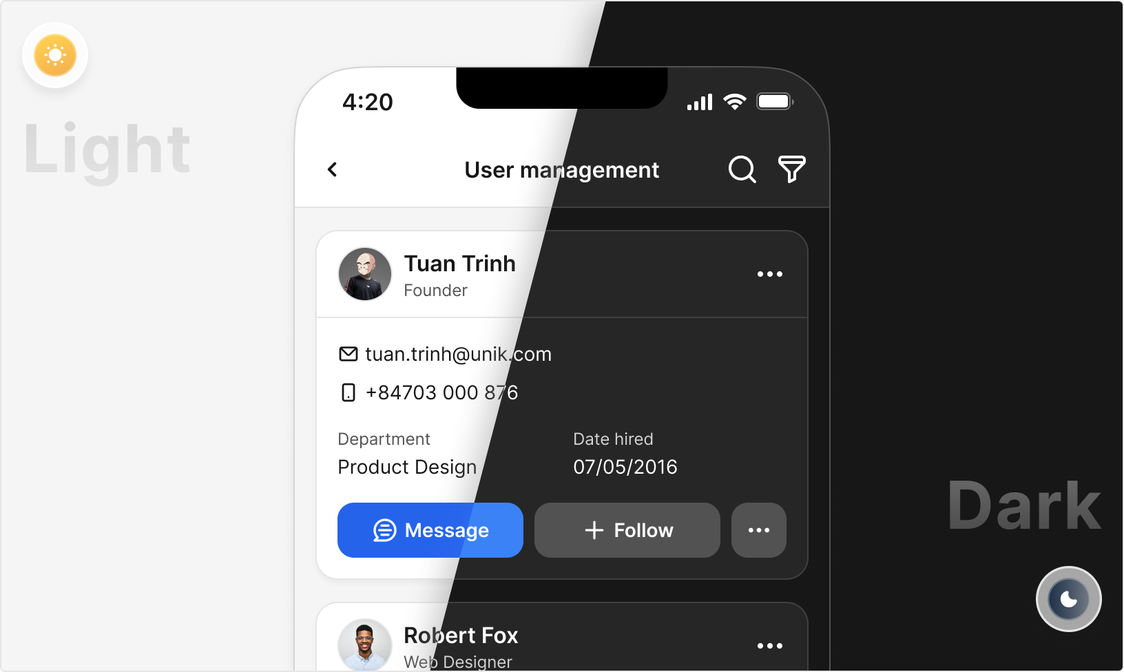 Improve user personalization by providing 2 modes (Light/Dark)