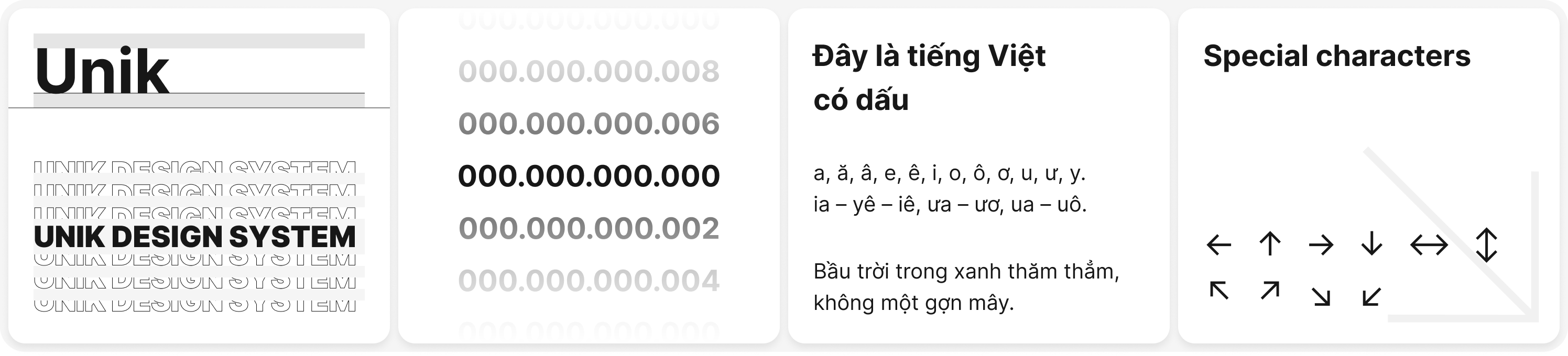 This typeface displays well in Latin characters, numeric, and special characters. Especially is Vietnamese