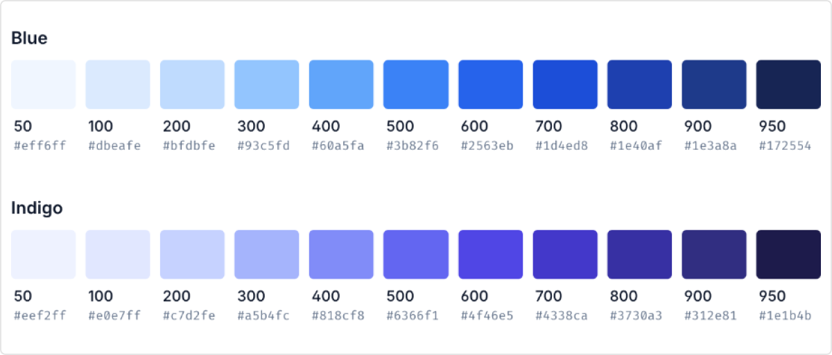 Tailwindcss color palettes