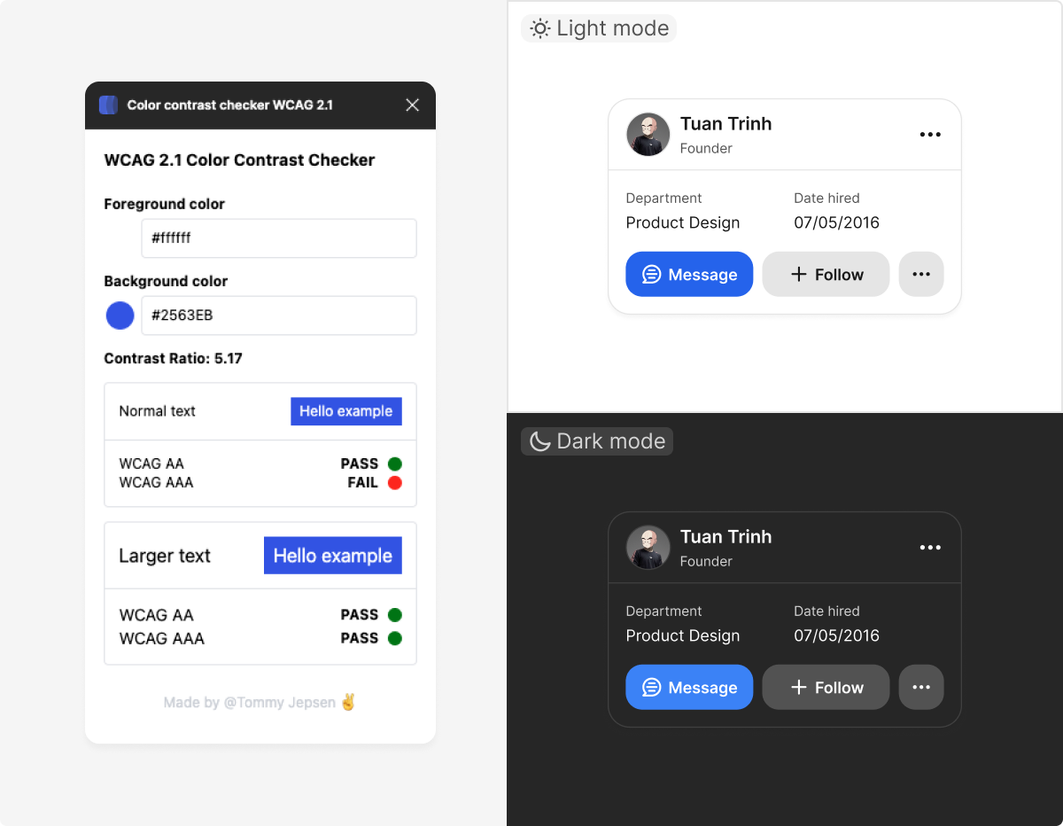 The color meets the WCAG contrast checker (the UI that I crafted after it was built)