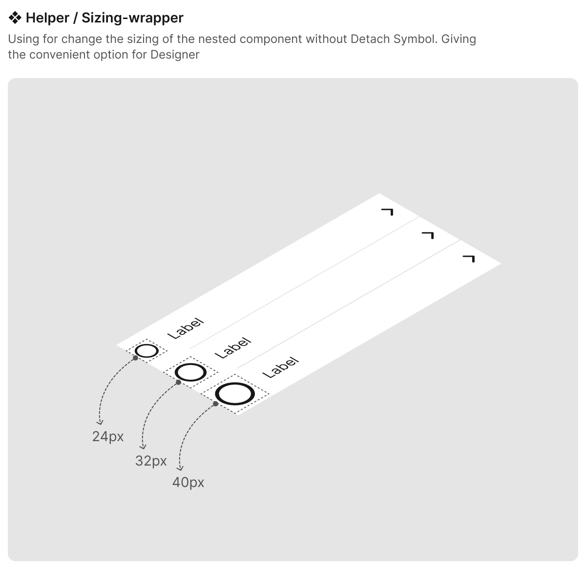 Provide the helper component that allows the designer to change the size of the component without detaching the component
